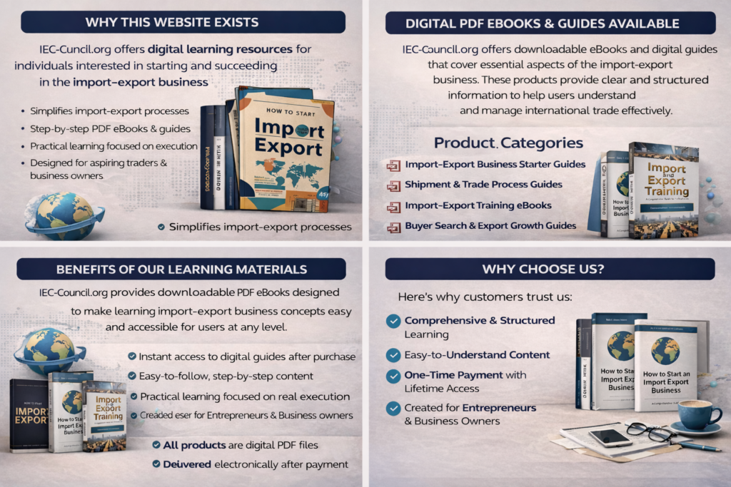 iecregistrationcouncil.org is created to simplify the import–export business for individuals and small businesses who want practical, step-by-step guidance in one place. Many aspiring traders struggle to understand how to start, manage shipments, find buyers, and execute international trade processes correctly. Our platform bridges this gap by offering structured digital learning resources that explain complex topics in a simple and actionable manner.